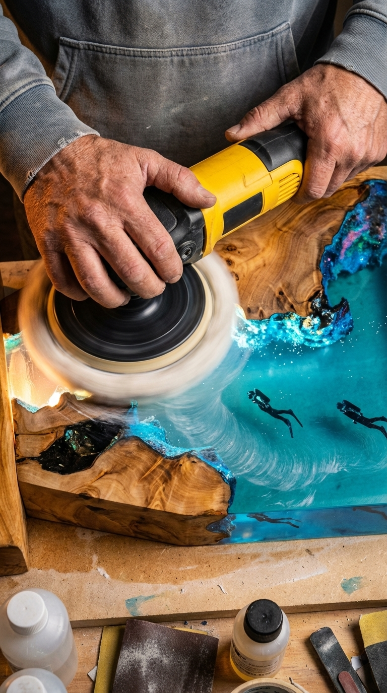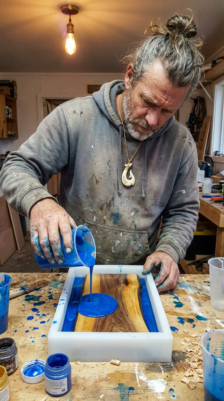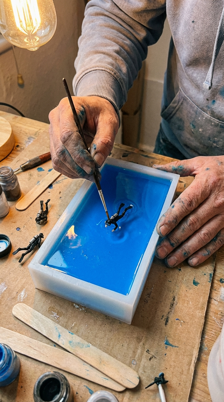 Just me, pouring resin, placing each tiny diver by hand.